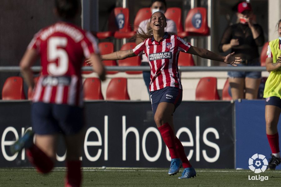 Prácticamente a renglón seguido, aprovechando que había salido muy bien organizado y con un punto más de intensidad que su adversario, el Atlético de Madrid inició una jugada por la banda izquierda a través de Ajibade que no dudó en ejecutar un pase sobre Deyna Castellanos, quien percatándose de la llegada desde atrás y de cara de Amanda Sampedro, optó por cedérsela a la capitana rojiblanca que no lo dudó ni un instante y le propinó un beso envenenado al cuero con el empeine de su pierna derecha que viajó a la escuadra azulgrana y sirvió para abrir la lata al firmar el 1-0 cuando el reloj indicaba el minuto 11 de partido.