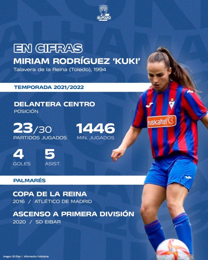 El Alhama Club de Fútbol ElPozo, recientemente ascendido a la Primera División Femenina, ha dado oficial al acuerdo alcanzado con Miriam Rodríguez González, deportivamente conocida bajo el apodo de “Kuki” para que ésta se incorpore a su primera plantilla.