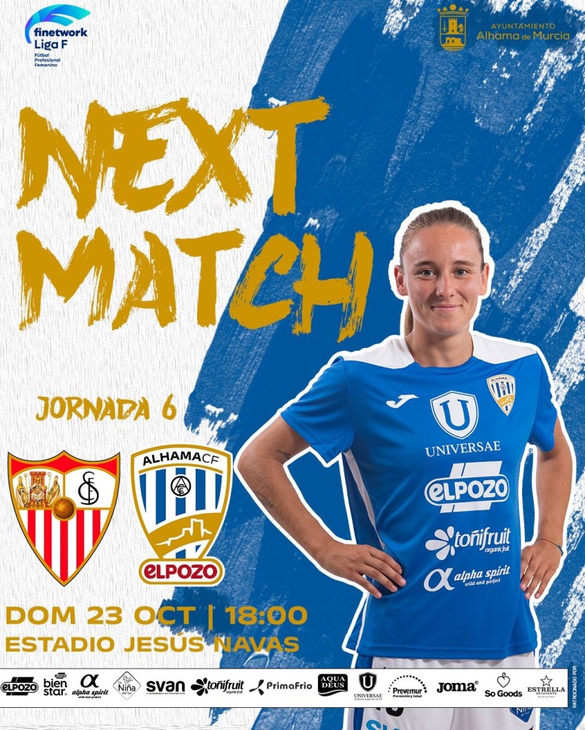 La jornada dominical de la nueva Finetwork Liga F 2022-2023 nos invita a viajar a Andalucía para vivir en la Ciudad Deportiva José Ramón Cisneros Palacio un duelo de enjundia entre el Sevilla Fútbol Club y el Alhama Club de Fútbol ElPozo.