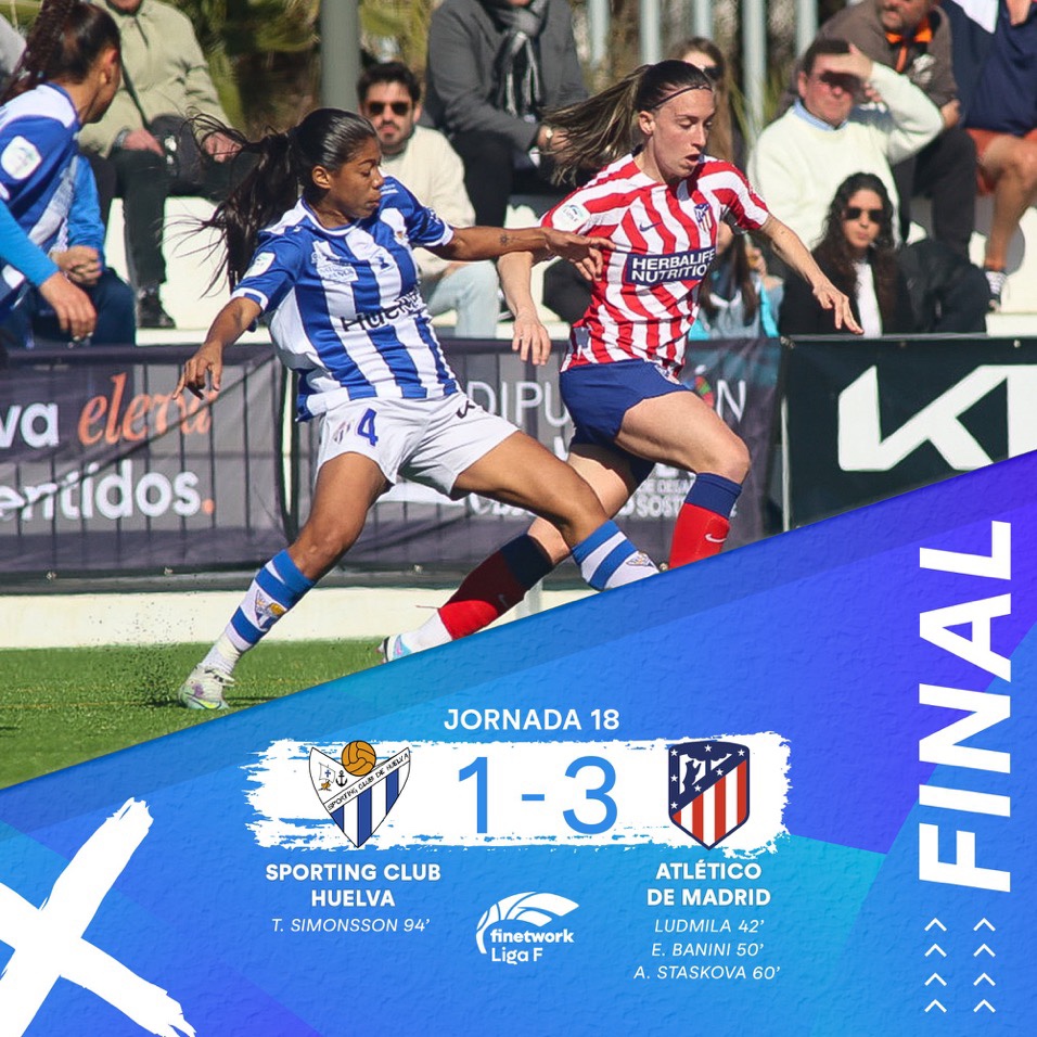 Con este siempre difícil triunfo en territorio onubense, el Club Atlético de Madrid Femenino que suma 33 puntos en su casillero particular que mantienen a las colchoneras a diez puntos de distancia de la zona Champions que marca el Levante Unión Deportiva de José Luis Sánchez Vera.