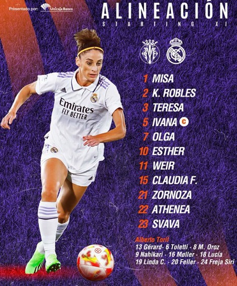 Real Madrid: Misa, K. Robles, Teresa (Nahikari, 91’), Ivana, Olga (Linda C., 67’), Esther (Feller, 74’), Weir, Claudia F., Zornoza (Toletti, 67’), Athenea (M. Oroz, 91’) y Svava.