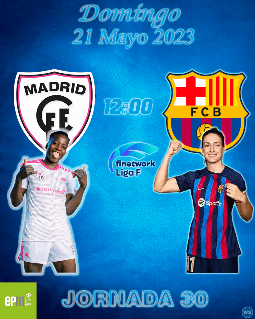 El Madrid Club de Fútbol Femenino y el Fútbol Club Barcelona Femenino afrontaban su última prueba del curso futbolístico 2022/2023 en el Estadio Fernando Torres, sito en Fuenlabrada que, además, en el caso de las visitantes llegaba antes de la final de la Champions y lo hizo con gran parte de su once de gala sobre el césped. Paños, Paredes, Mapi, Walsh, Aitana, Patri o Mariona Caldenty gsalieron de inicio para terminar la temporada en la Liga F con buenas sensaciones y el Madrid CFF, delante de su público, presentaba sus mejores galas con Paola Ulloa en portería, Commeti, Mónica Hickmann y Lauren Leal en la retaguardia, un Trivote con Karen Araya, Aida Esteve y Ana González en la línea medular para que arriba actuase Flor Bonsegundo como enganche y Rachael Kundananji de delantera centro.