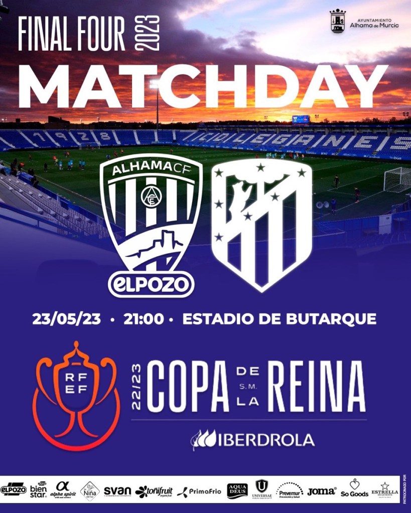 A vuelta de la esquina se encuentra ya la “Final Four” de la Copa de la Reina 2023 en Butarque (Leganés), donde el Alhama Club de Fútbol ElPozo, el Atlético de Madrid Femenino, el Athletic Club y el Real Madrid lucharán por coronarse como campeón de la Reina 2023 en su XLI edición.