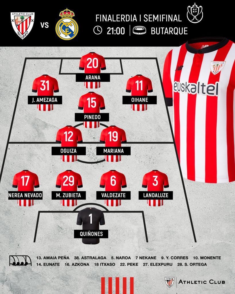 Athletic Club: Quiñones, Valdezate (Azkona, 18′) Landaluze, Oihane, Oguiza (Nekane, 67′), Pinedo, Nerea Nevado, Mariana (Itxaso, 46′), Arana (Elexpuru, 90′), M.Zubieta y J.Amezaga (Peke, 67′).