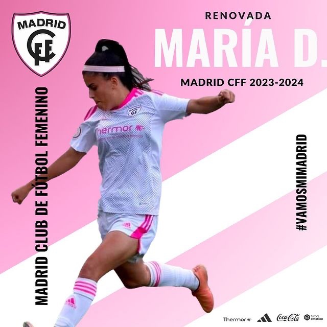 Madrid Club de Fútbol Femenino, quinto clasificado de la LPFF, ha anunciado a través de sus redes sociales, ( https://instagram.com/lmadridcff_promesas1?igshid=MzRlODBiNWFlZA==), que ha sido capaz de alcanzar un acuerdo María Delgado Blázquez para que ésta renueve su situación contractual de cara al curso futbolístico 2023-2024.