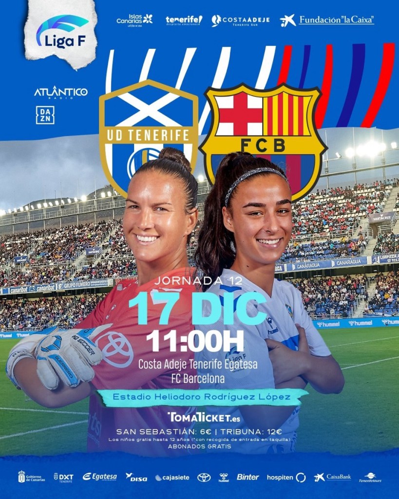 El representativo canario vivirá esta histórica cita el próximo 17 de diciembre de 2023 frente al todopoderoso Fútbol Club Barcelona Femenino, a partir de las 12:00 horario peninsular, en el marco de la duodécima fecha de la Primera División Femenina.