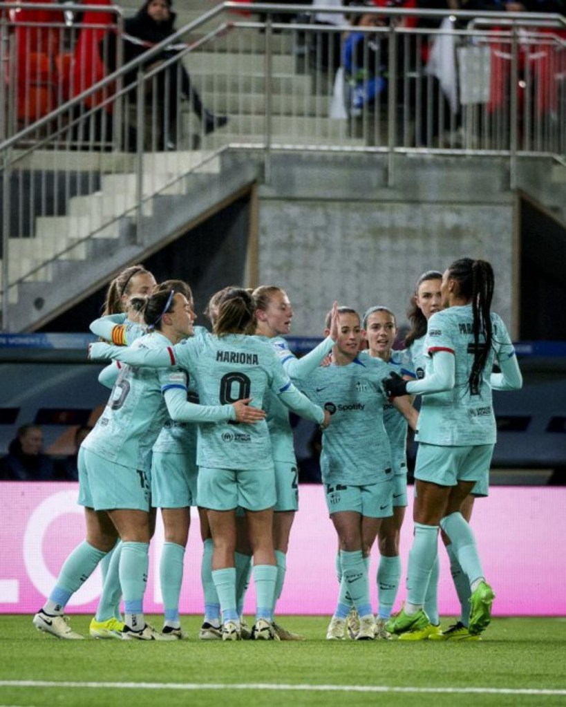 noruegas no esperaron detrás cuando las azulgranas dominaron la pelota, y salieron con la presión alta para tratar de evitar una goleada. Intentaron cerrar todos los pasadizos, pero las futbolistas del Barça se asentaron en el área rival, disparando una y otra vez contra una excelsa Mikalsen. La noruega irguió una muralla en la portería, parada tras parada, evitando con solvencia una más que posible sangría azulgrana, aunque hoy el campeón de la Liga F iba de azul celeste.