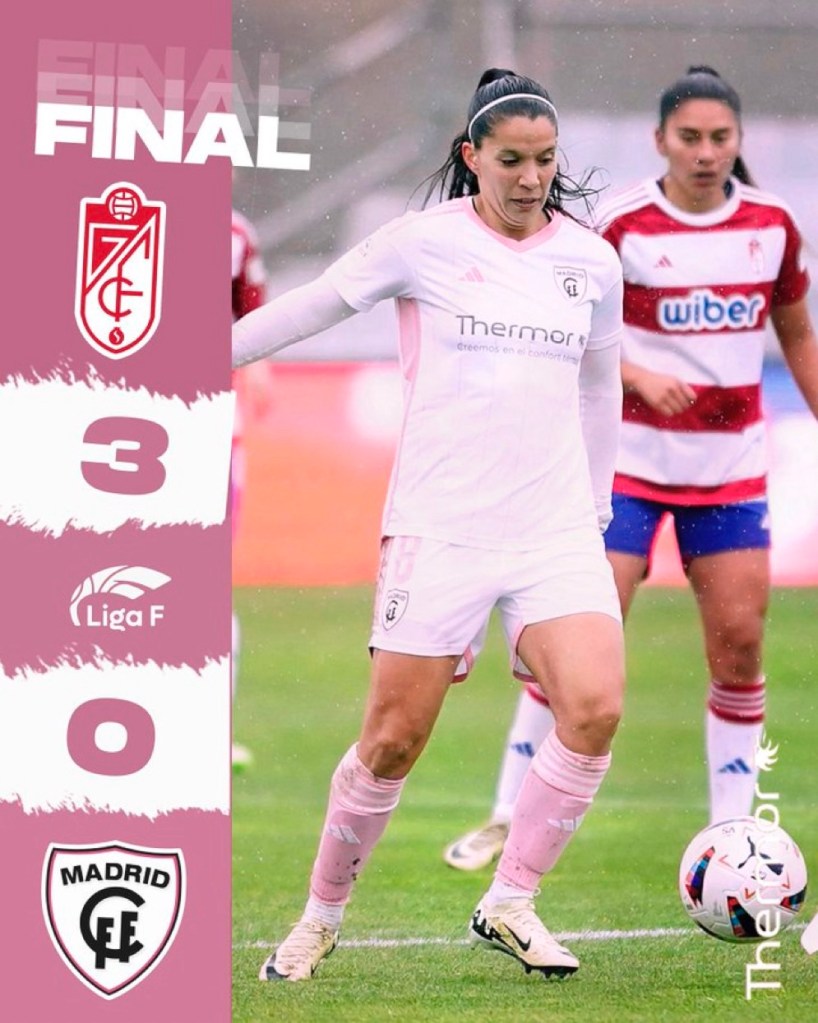 Tras la reanudación, nada cambió. El Granada, ordenado y solidario, desbarataba cada intentona de un Madrid CFF que se iba desesperando a medida que pasaban los minutos. Sandra era un muro, Postigo y Carrasco las líderes de la defensa y Falfán y Alicia llegaban a todas en la línea medular.