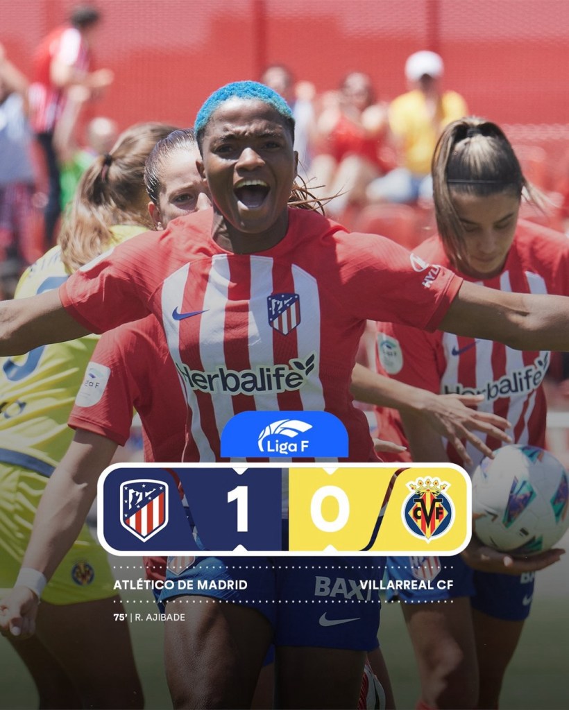 El cuadro local fue perdiendo algo de intensidad con el paso de los minutos y el Villarreal, que se jugaba la permanencia, iba avanzando líneas. Sin embargo, las colchoneras volvieron a venirse arriba y justo antes en el descanso, Sheila volvía a tener el primero esta vez en una ocasión aún más clara amén a un centro de Ajibade desde la banda derecha que se le quedaba algo corto a la delantera africana, pero, a pesar de todo, esta logró rematar, y el esférico se estrelló en la misma cruceta.
