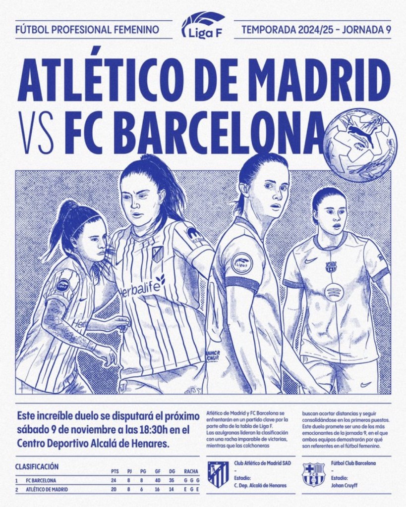 El encuentro Atlético de Madrid vs Barcelona, correspondiente a la jornada 9 de la Liga F 24/25, se disputa el sábado, 9 de noviembre a las 18:30 horario peninsular.