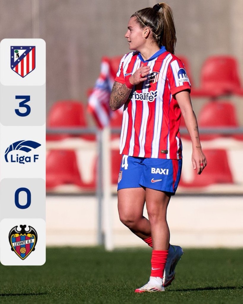 Con esta importante victoria ante el Levante Unión Deportiva , el Atlético de Madrid Femenino vuelve a sumar de tres tras no hacerlo desde el mes de noviembre del año pasado, larga fue la sequía, y acumula ya 28 unidades en su casillero particular para no perder la tercera posición en la Primera División Femenina tras el marcador favorable al Athletic Club en Cataluña contra el Espanyol.