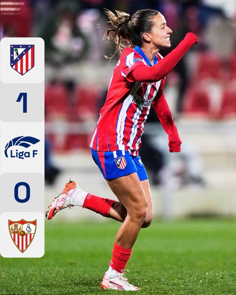 Nada más comenzar la segunda parte, el Atlético encontró el gol. En el minuto 50, tras una jugada a balón parado, la defensa del Sevilla despejó el balón, pero el rechace cayó en los pies de Tatiana Pinto. La centrocampista no lo dudó y conectó un disparo cruzado desde fuera del área que batió a Sullastres con maestría para celebrar su primer tanto como rojiblanca y se abría la lata con el 1-0 en el marcador que tranquilizó al banquillo local sobremanera.
