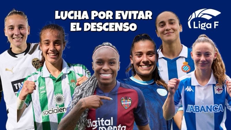 A falta de cinco jornadas para el final, seis equipos se encuentran metidos en la pelea por evitar el descenso en Liga F. El Valencia se sitúa ahora mismo colista de la competición con 15 puntos, a ocho de la salvación. La otra plaza la ocupa actualmente el Real Betis Féminas, que se encuentra con 22 puntos, a solo uno del Levante UD, que marca la permanencia. El FC Levante Badalona lleva 24 puntos, el RCD Espanyol ha sumado 25 y el Deportivo Abanca acumula 26. Por su parte, el Madrid CFF ya ha alcanzado las 28 unidades. Seis puntos por encima del descenso más el goal average particular ganado a las verdiblancas, que le que le permite estar a más de dos partidos del descenso. Un ligero colchón sobre la quema, aunque no se puede confiar si no quiere meterse en problemas. Estas son las cuentas de cada equipo para esta recta final: