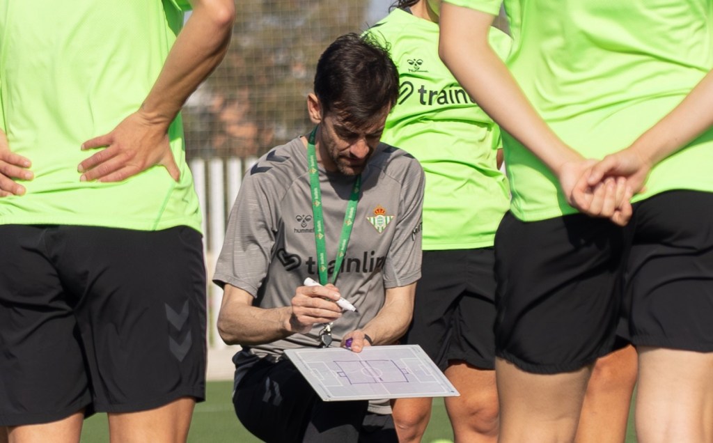 “Se está generando un clima de trabajo muy bonito, donde las jugadoras disfrutan y están saliendo las cosas muy fluidas”, explica Juan Rojo Rodríguez (Sevilla, 28 de noviembre de 1983) en una entrevista con Liga F. El entrenador sevillano es la esperanza del cuadro verdiblanco para conseguir la permanencia, que ahora mismo tiene a un punto. Se estrenó con victoria ante la Real Sociedad (3-1) y el Real Madrid ya espera en el horizonte como el primero de los cinco partidos que quedan, aunque él prefiere centrarse en el día a día. “No nos podemos permitir otra cosa porque eso es lo que te da la mejora que luego se traslada en el partido”, declara el técnico. Natural de Sevilla, con 18 años se marchó a Málaga para estudiar, y la Costa del Sol se convirtió en su segunda casa y el fútbol en su trabajo.