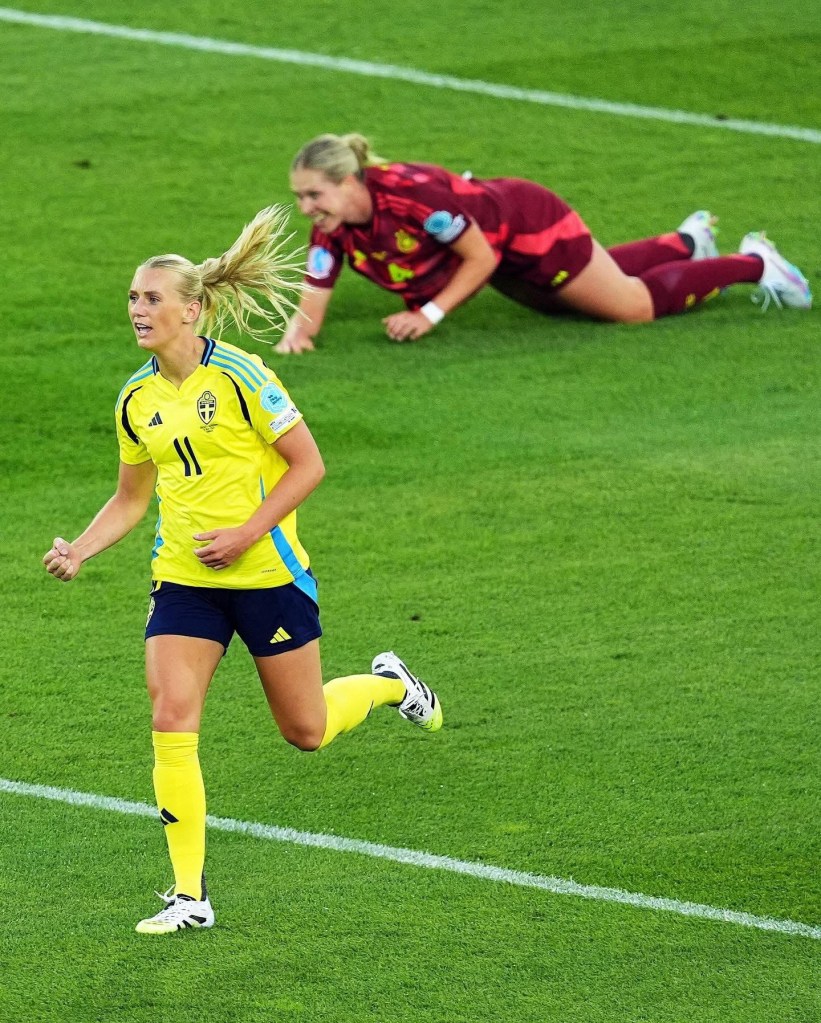 Suecia estaba todavía intentando quitarse los sustos del cuerpo, con Asllani cabalgando al contragolpe, cuando la propia Wamser recibió un envío de Schuller que convirtió en asistencia para Brand y la nueva estrella del Lyon abría la lata al firmar el 0-1 con un chut cruzado y desató la locura a los 7 minutos en el Stadion Letzigrund de Zúrich. Iba a pasar de todo para alegría del espectador neutral.
