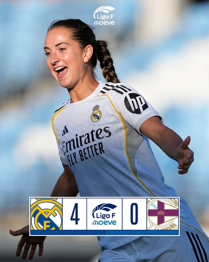 El Alfredo Di Stéfano vivió una tarde de celebración y contundencia. Antes del inicio del encuentro, el Real Madrid homenajeó a sus campeonas de Europa Sub-19, un guiño al futuro que se mezcló con la solidez de un presente que pide paso en la Liga F Moeve 2025-26. El equipo de Pau Quesada superó con autoridad al Deportivo Abanca (4-0) y escaló hasta la quinta plaza con siete puntos, recortando terreno a su gran rival, el Atlético de Madrid, que no pasó del empate en su duelo frente al Madrid CFF.