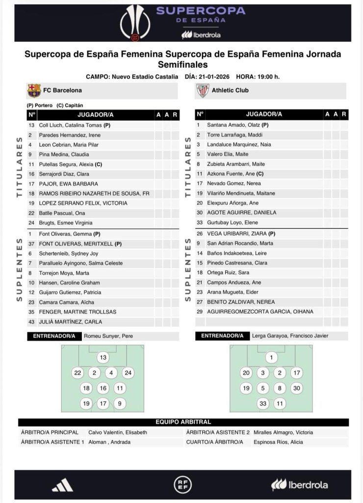 ATHLETIC CLUB: Olatz Santana, Maddi Torre (Ane Campos, 78′), Naia Landaluce, Maite Valero (Aguirregomezcorta, 85′), Maite Zubieta, Ane Azkona, Nerea Nevado, Maitane Vilariño (Sara Ortega, 62′), Ane Elexpuru, Daniela Agote (Leire Baños 85′), Elene Gurtubay (Pinedo 78′).