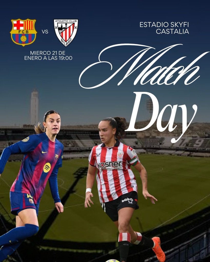 🟫 El Fútbol Club Barcelona disputará la Final de la Supercopa de España ante el Real Madrid el próximo sábado 24 de enero a las 19h (RTVE), tras imponerse al Athletic Club por 3-1, en un disputado encuentro en el que las leonas se adelantaron de penalti y la réplica la pusieron Ona Batlle, Irene Paredes y Ewa Pajor.