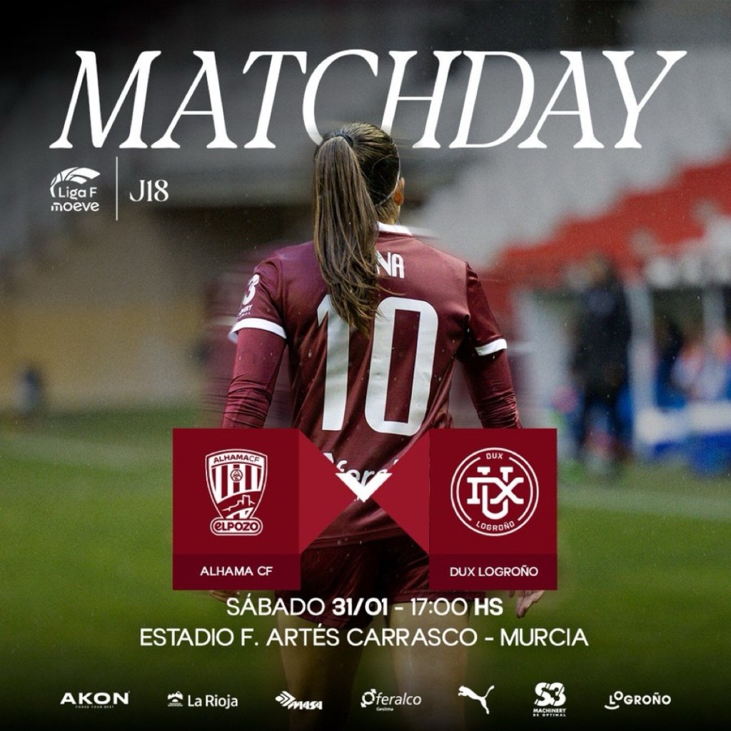Lo que se juega este sábado 31 de enero a las 17:00 horas en el Estadio Francisco Artés Carrasco de Lorca de Murcia trasciende cualquier etiqueta convencional de “partido de Liga”. No es una jornada más, no es un simple cruce entre dos equipos de la zona baja, no es una tarde cualquiera de fútbol femenino. Es un punto de inflexión, una frontera emocional, deportiva y casi existencial para dos proyectos que llevan meses caminando sobre el alambre, con el vértigo constante del descenso marcando cada paso, cada decisión y cada balón dividido. Alhama CF ElPozo y DUX Logroño se citan en un duelo directo por la permanencia que condensa en noventa minutos el peso de una temporada entera, la angustia acumulada de semanas sin ganar, la esperanza renovada —o agotada— de mercados invernales, cambios de banquillo, reconstrucciones forzadas y una Liga F Moeve que no concede tregua ni margen de error a quienes se quedan atrás.