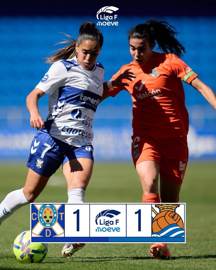 ✨ El Costa Adeje Tenerife y la Real Sociedad empataron (1-1) en el Heliodoro Rodríguez López. Un duelo en el que adelantaron las locales con un tanto de Iratxe Pérez. A la media hora, Nahia Aparicio puso las tablas en el marcador. Claudia Florentino fue la MVP del partido.