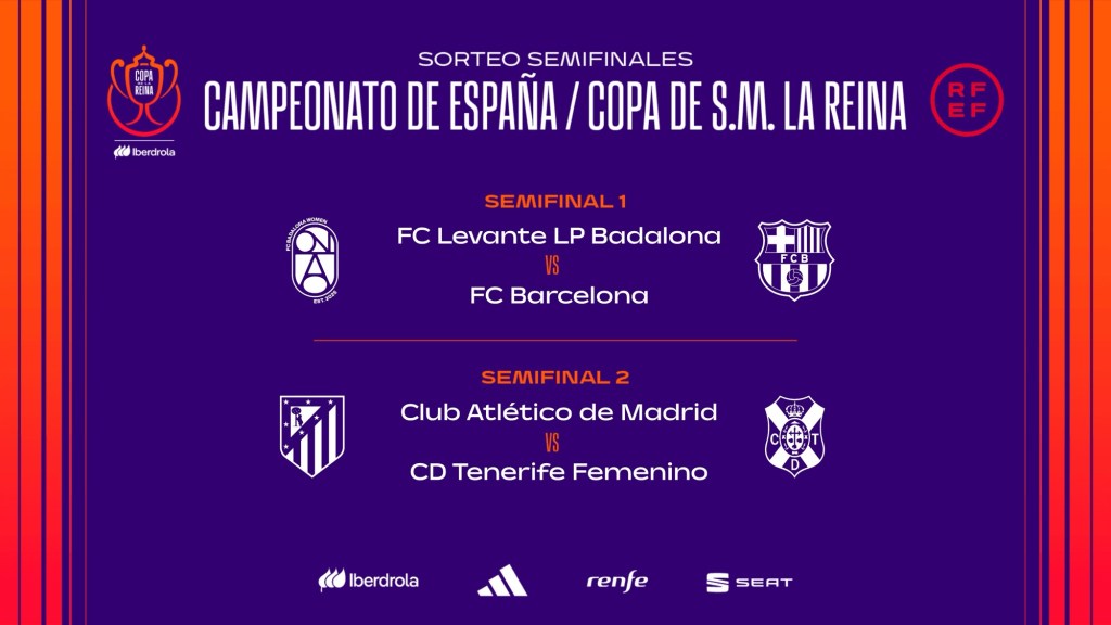 🔷 El FC Badalona Women se enfrentará al FC Barcelona en las semifinales de Copa de la Reina, mientras que el Atlético de Madrid se verá las caras contra el Costa Adeje Tenerife. La ida se jugará el 10, 11 o 12 de marzo, y la vuelta se disputará el 17, 18 o 19 de marzo en busca de dos billetes para la final.