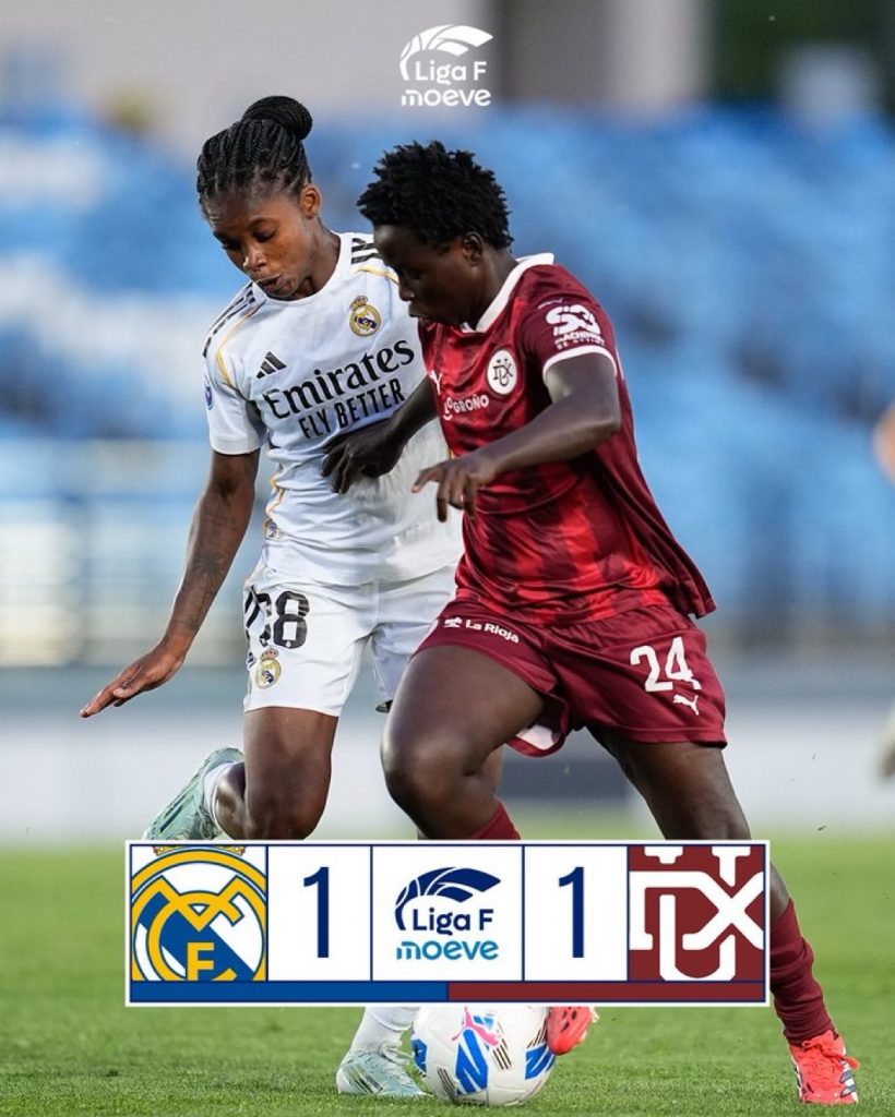 ⬛️ El club riojano empató (1-1) ante el Real Madrid CF en el Di Stéfano. Un gol de Linda Caicedo a los cuatro minutos de juego abrió el marcador, pero Annelie Leitner, que fue la MVP del choque, puso las tablas en el marcador en el último minuto para impedir la aplazar la clasificación europea de las locales.