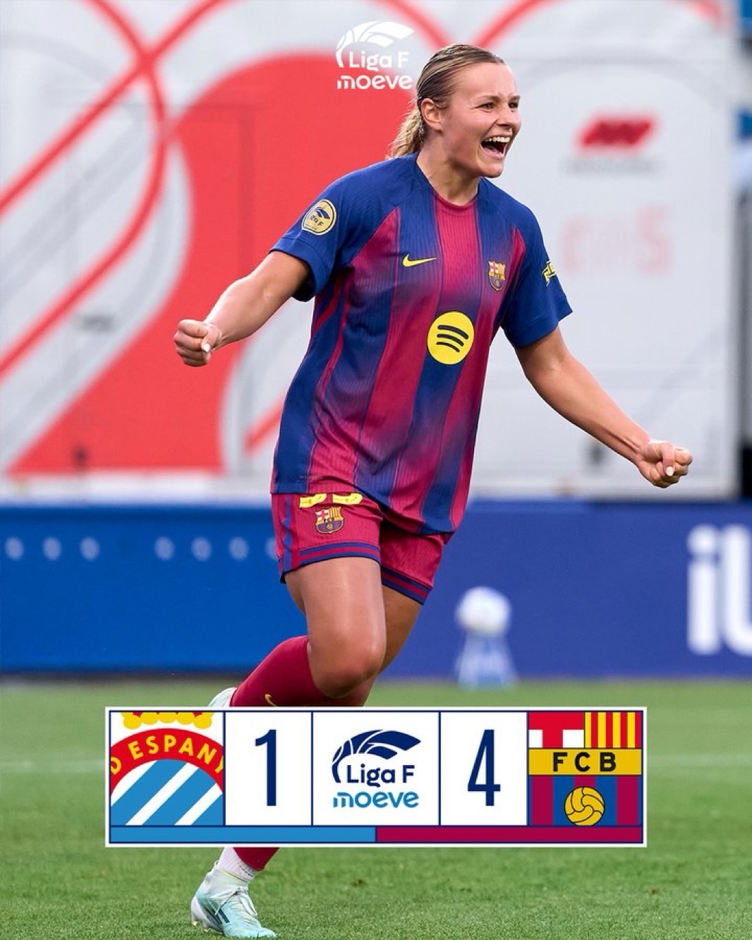🟩 Martine Fenger, con un doblete, decide el derbi catalán para coronar al Barça como campeón tras doblegar por 1-4 al Espanyol en un derbi que entra en la historia.