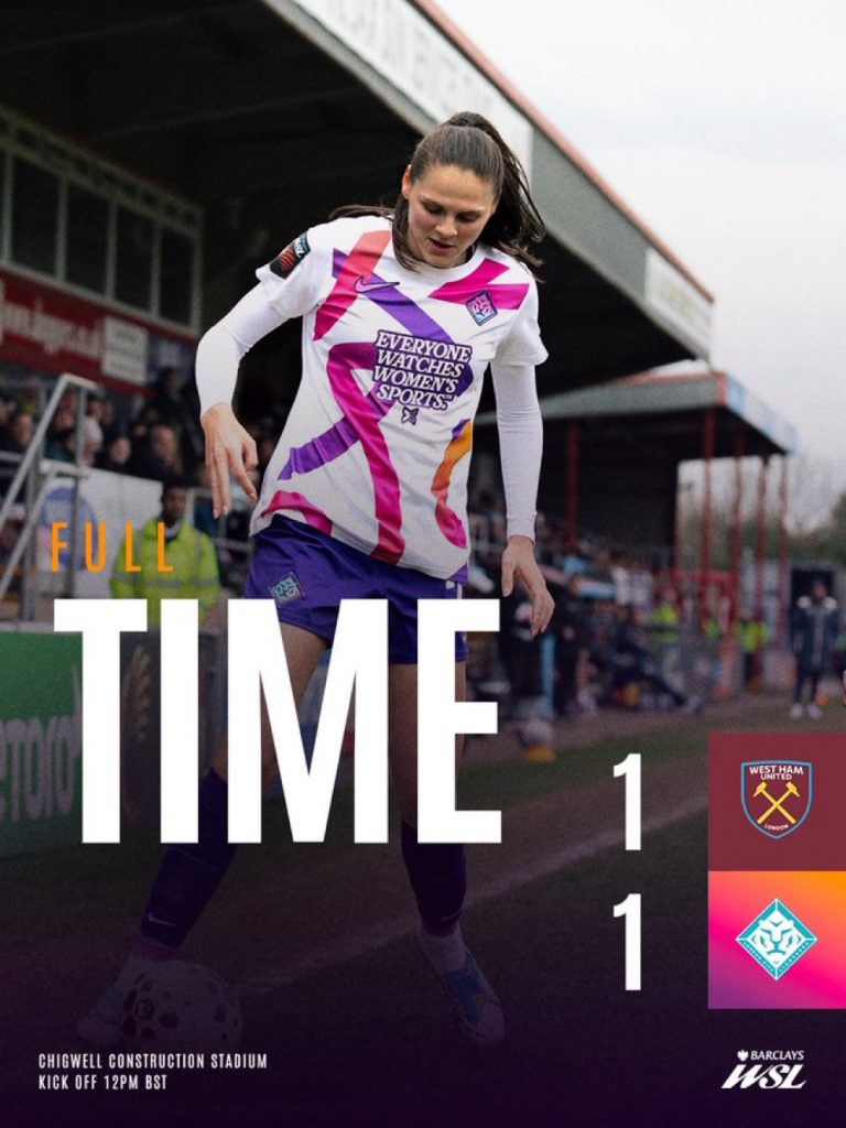 🟦 En Essex no se jugó solo un partido. Se jugó una batalla silenciosa, de esas que no estallan en cifras escandalosas pero que laten en cada metro de césped, en cada duelo contenido, en cada error que puede ser sentencia. El 1-1 entre el West Ham United Women y el London City Lionesses fue un choque de pulsos más que de goles, de resistencia más que de brillantez, donde dos fogonazos —uno nacido de la velocidad salvaje del contragolpe y otro de la inspiración pura— rompieron la aparente calma de un duelo que siempre estuvo al borde de incendiarse… pero eligió arder solo en momentos concretos.