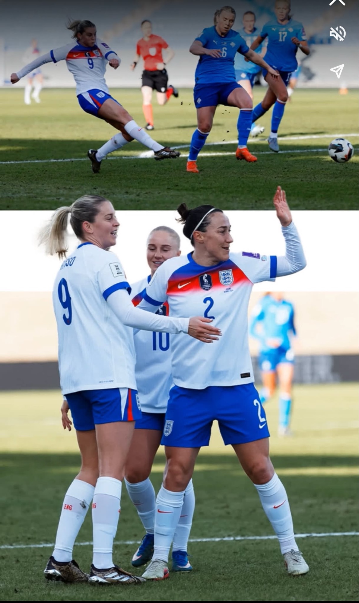 La única vía de escape islandesa eran los envíos largos de su portera, balones directos que buscaban ganar metros, oxígeno, tiempo. No había elaboración, no había pausa, pero sí intención de sobrevivir, de no quedar completamente hundidas. Y en algunos momentos, lo consiguieron. Pequeños avances, tímidos, sin continuidad, pero suficientes para bajar una marcha el asedio inglés durante unos instantes. Fue ese pequeño respiro, ese instante en el que el partido pareció equilibrarse ligeramente, el que precedió a la tormenta definitiva.