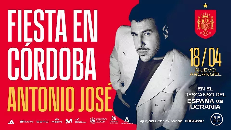 ⬛️ Antonio José, ganador de La Voz, actuará en el descanso del España-Ucrania femenino en el Nuevo Arcángel de Córdoba el sábado 18 de abril de 2026.