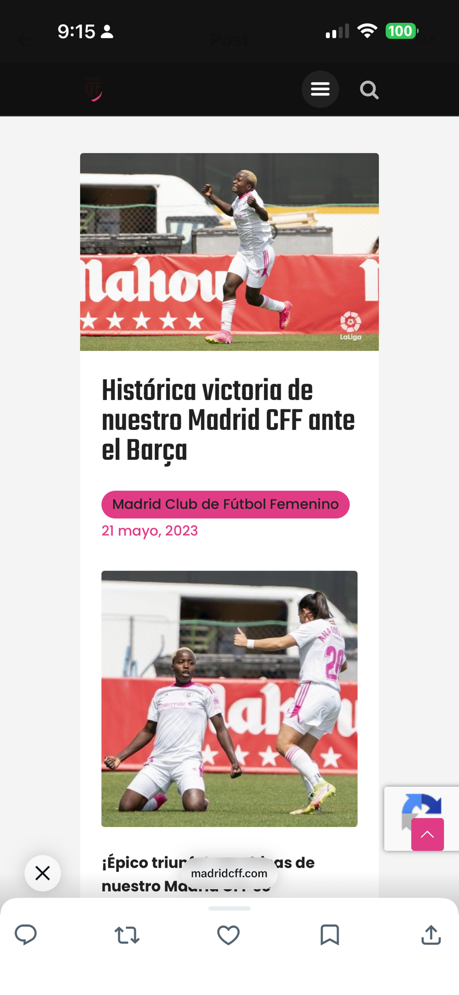 ⬛️ Desde la plataforma El Partido de Manu, Manu López Fernández responde al reconocimiento recibido por Vip Deportivo reivindicando una trayectoria construida entre 2022 y 2025 en el Madrid CFF, marcada por hitos deportivos como la histórica victoria ante el F.C. Barcelona en Fuenlabrada, y por vínculos profesionales y personales que han definido su mirada del fútbol femenino, con especial mención a María Pry y a José Luis Sánchez Vera, figuras clave en su evolución dentro y fuera del terreno de juego.