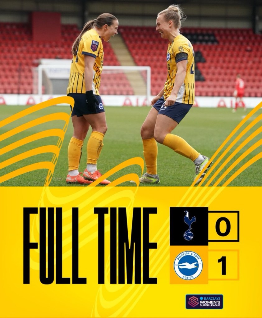 ⬜️ ¡Triunfo visitante! The seagulls sacaron petróleo de un partido muy cerrado ante las Spurs (0-1) con una diana de la exjugadora del Chelsea.
