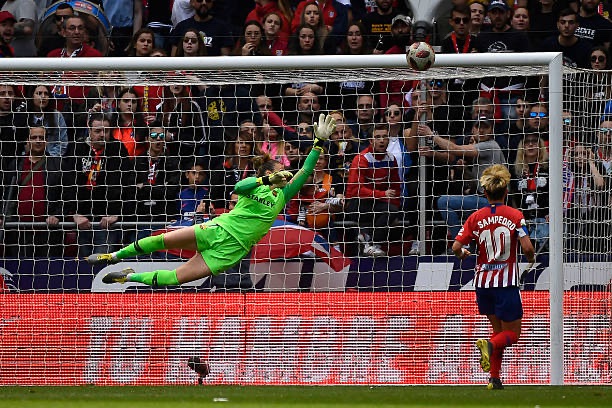 En un ambiente hostil y en inferioridad numérica el Atlético de Madrid pudo haber temblado, pero las de Viti no lo hicieron e incluso marcaron un nuevo gol que fue anulado por fuera de juego y así se desembocó en una tanda de penaltis en la que emergió la figura de la protagonista de este post, P. Larqué .
