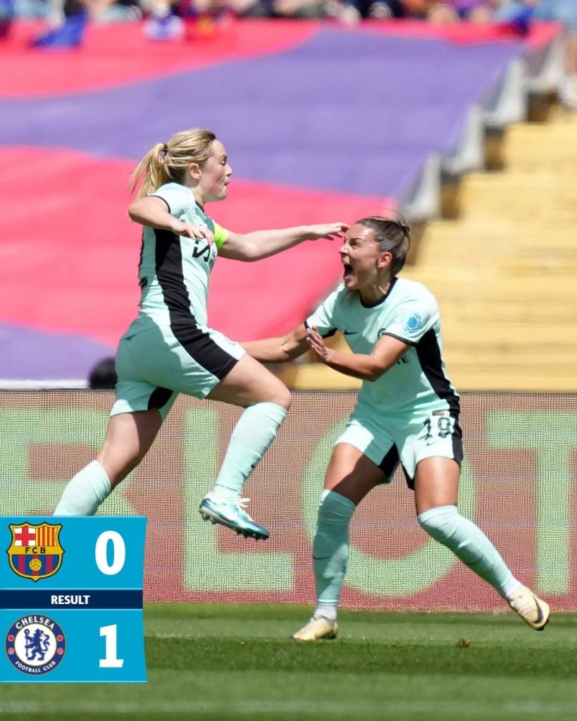 Y cuando el Chelsea ha empezado a encontrar momentos para respirar con balón, una gran combinación dentro del área culé entre Sjoeke Nüsken y Erin Cuthbert acabaría con un gran disparo de la escocesa para hacer el 0–1 en el marcador a los 40 minutos de la semifinal y hacia saltar la sorpresa en Cataluña.