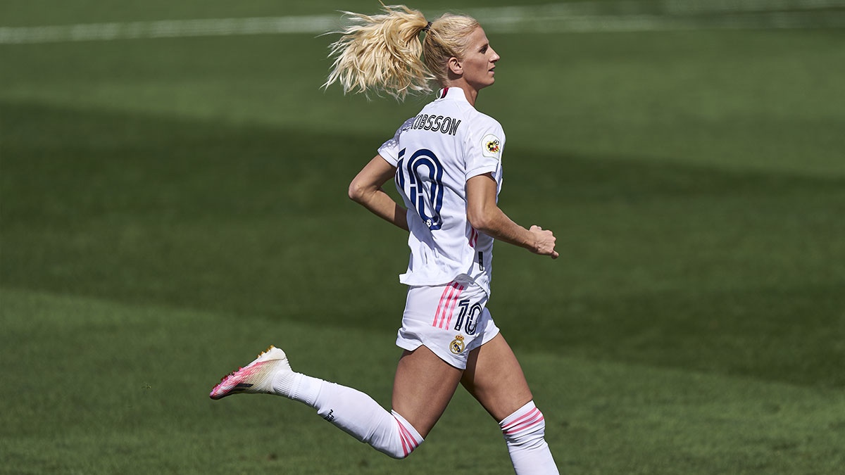 A partir de ese momento y tras un intento estéril de las catalanas por ampliar su ventaja, se toparon una y otra vez con la portera merengue, las de David Aznar despertaron de su letargo inicial y trenzaron acciones veloces al contragolpe. Esta táctica estuvo muy cerca de dar sus frutos, no en vano, en el minuto 28 una acción individual de Marta Cardona por el perfil diestro provocó que Asllani le robase el esférico a Sandra Paños y ajusticiase a la guardameta azulgrana. Esta acción, a todas luces legal, no tuvo efecto en el tanteador después de que la colegiada principal la anulase al apreciar una falta de la delantera sueca en el momento del robo del cuero y el empate se fue al limbo.
