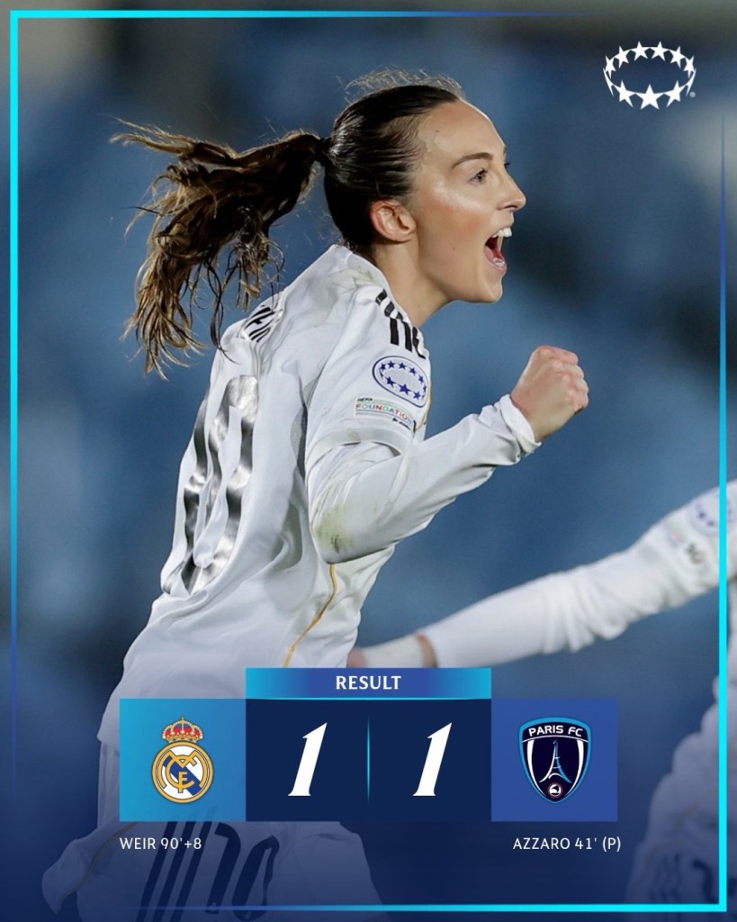 El Estadio Alfredo Di Stéfano se convirtió anoche en un hervidero de tensión y pasión continental, en un escenario donde la UEFA Women’s Champions League volvió a demostrar por qué cada balón disputado, cada regate y cada parada pueden convertirse en historia. El Real Madrid y el Paris Football Club firmaron un duelo bronco, eléctrico y dramático, un partido marcado más por la intensidad que por el fútbol fluido, pero que terminó ofreciendo un final de película: un empate in extremis (1-1) que deja a las blancas invictas y con la sensación de haber sobrevivido a un envite que rozó la derrota.