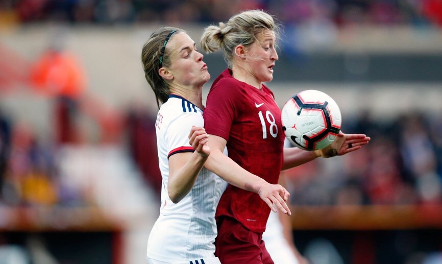 Poco a poco, el transcurso de los minutos fue favorable para las españolas que se aprovecharon del planteamiento ultra defensivo de ‘Las Rosas de Acero’ para tener mayor presencia en la parcela ofensiva en una primera mitad en las que sólo faltó afinar la puntería de cara a puerta, destacando un disparo de Mariona Caldenty y un testarazo de Jennifer Hermoso que sirvieron para clausurar el primer acto.