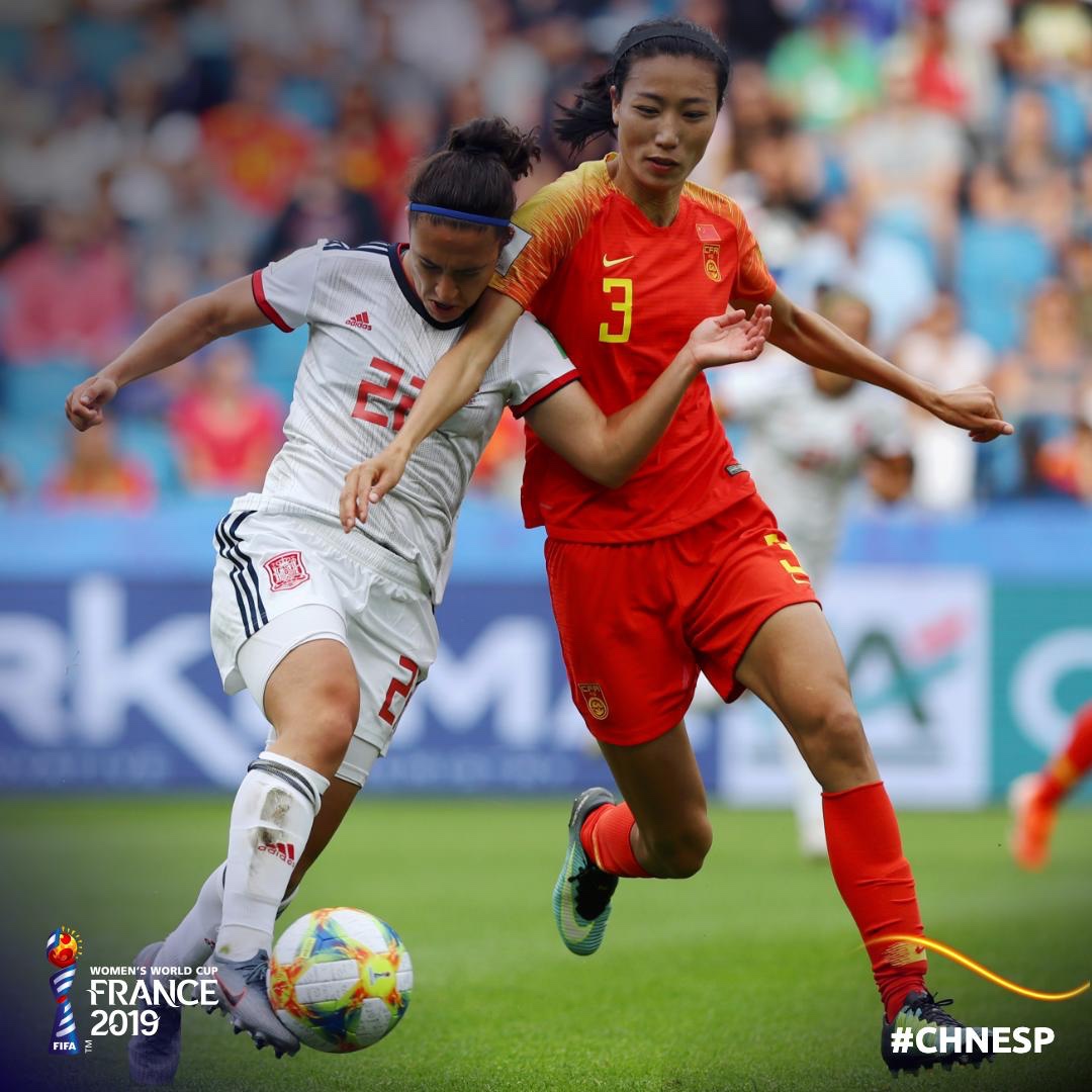 La contienda se inició con superioridad de las europeas. En los compases posteriores al pitido inicial España, que mereció sacar algo positivo en la 2ª jornada en el Grupo B, se hizo con el control del esférico en la línea medular y buscaban trenzar acciones asociativas con las que inquietar la meta defendida por Peng. Bajo este contexto de partido Jennifer Hermoso filtró un balón al espacio sobre el desmarque que había trazado Lucia Garcia a la espalda de las centrales, sin embargo, la atacante del Athletic Club de Bilbao no acertó a enviar el esférico al fondo de las mallas, era el minuto 3 de juego.