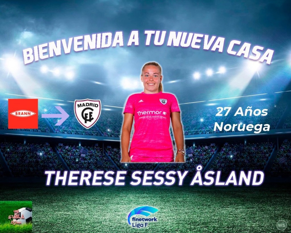 El Madrid Club de Fútbol Femenino ha hecho público, a través de su página web oficial (https://madridcff.com/), que se ha hecho con los servicios de Therese Sessy Åsland.