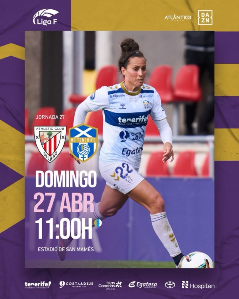 Segunda salida consecutiva para el Costa Adeje Tenerife Egatesa. La vigesimoséptima jornada de la Liga F será histórica para el fútbol tinerfeño, siendo la plantilla dirigida por Eder Maestre, la primera en visitar el nuevo San Mamés inaugurado en septiembre de 2013 y que abrirá sus puertas por cuarta vez esta temporada tras disputar encuentros clave, como el derbi vasco y las visitas de FC Barcelona y Real Madrid. A orillas de la ría de Bilbao, las guerreras vivirán un encuentro tan especial como importante de cara a una reñida clasificación en este tramo final de competición ante un rival que jugará con la presión de disputar la tercera plaza.
