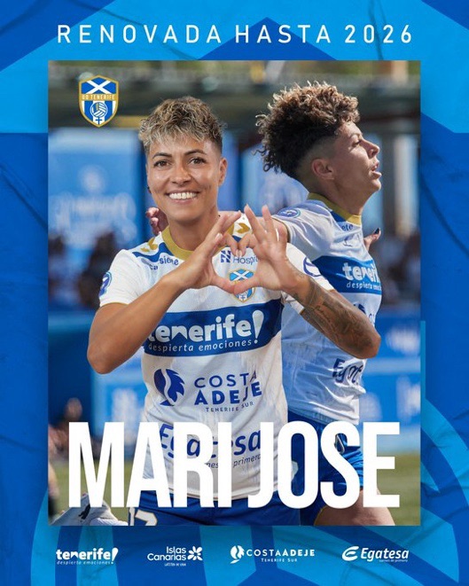 A sus 41 años, Mari Jose es un ejemplo de dedicación y liderazgo dentro y fuera del campo, que seguirá vistiendo la elástica del Costa Adeje Tenerife Egatesa hasta la temporada 2026, sumándose a la lista de las renovaciones ya anunciadas del técnico Eder Maestre, así como las jugadoras Patri Gavira, Paola Hernández y Clau Blanco.