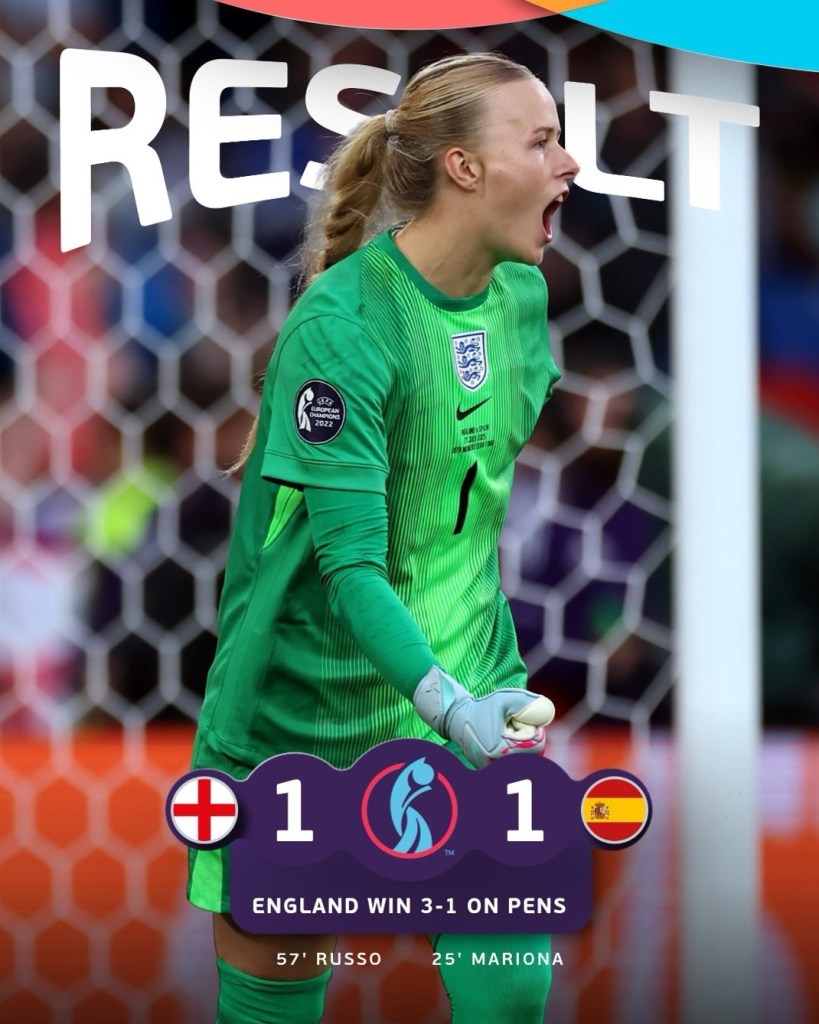 Sin embargo, las paradas de Hampton a los tiros de Mariona Caldentey y Aitana Bonmatí , y el disparo fuera de Salma permitieron que Chole Kelly se convirtiera en la heroína británica al ajusticiar a una portera balear que esta vez tuvo que derramar lágrimas de sangre, un mal que compartió con sus compañeras en cuanto el chut de la jugadora del Manchester City besó el interior de las mallas en instaló el 3-1 en la tanda para hacer que Inglaterra levante su segunda Eurocopa de manera consecutiva y se tome una pequeña reválida, jamás será suficiente, del gol que marcó Olga Carmona en Sídney.