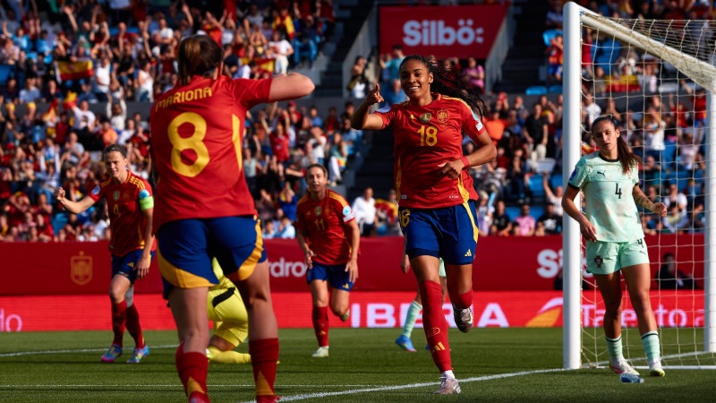 A la Roja le entraba todo, y en el minuto 51, Aitana vio a Alexia, que completó la acción de su compañera con un gran disparo que se coló al fondo de la red. Un tanto construido por cuatro Balones de Oro para hacer el 5-0. A la media hora de partido, Esther González anotó el sexto. Con el encuentro cerrado, Vicky López entró en el centro del campo, y tan solo un despiste defensivo sirvió para que la portuguesa Bea maquillase el resultado. Cristina Martín-Prieto también tuvo minutos en un triunfo coral en la que las campeonas del mundo volvieron a brillar en un escenario de lujo. Además, la alegría fue doble con la derrota de Inglaterra ante Bélgica (3-2). Un resultado que deja a las de Montse Tomé en la primera posición del grupo 3 a falta de dos jornadas, donde precisamente se medirá a las belgas y a las inglesas.