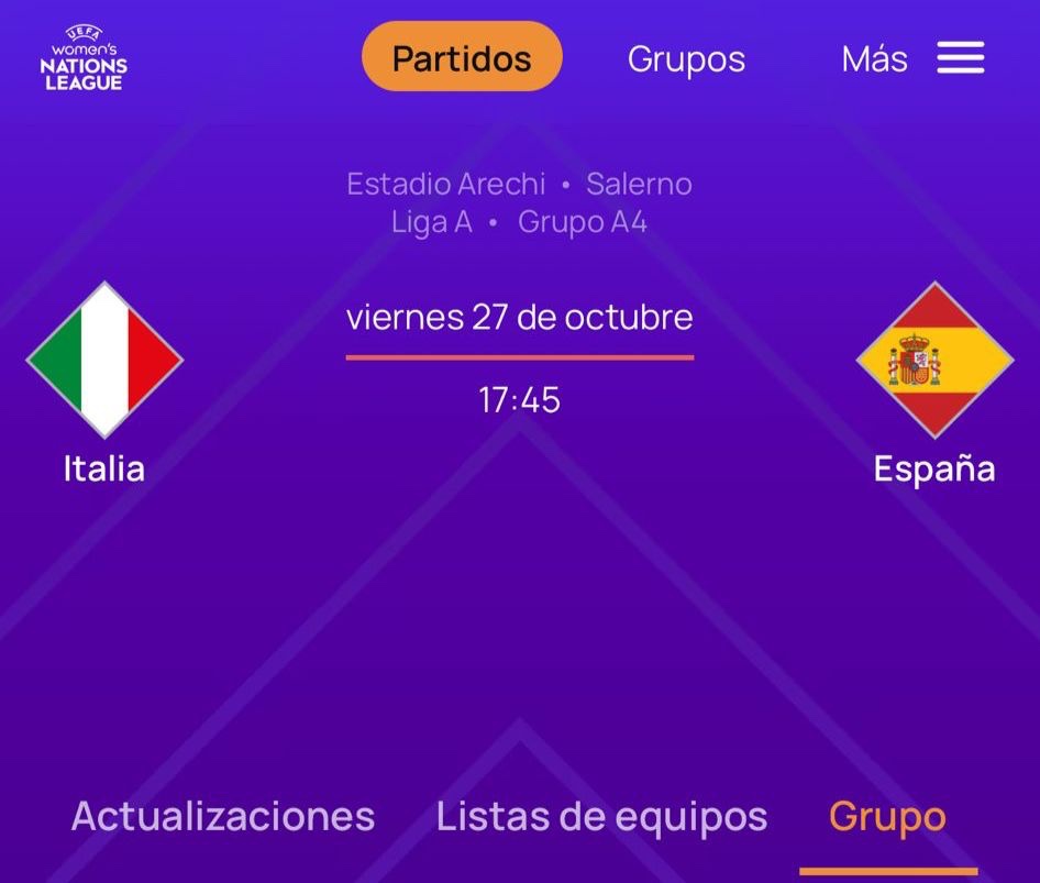 Suiza vs España (19:00 horario peninsular). Después de que se celebre la sexta jornada de la Liga F, entre el 21 y el 22 de octubre de 2023, el torneo de la regularidad se tomará un descanso para que todos los focos se centren en las campeonas del mundo para que sigan escribiendo la historia que está por venir. Las evoluciones de este compromiso se van a poder seguir a través de La 1 de RTVE y la aplicación de streamining de RTVE Play este próximo viernes, 27 de octubre de 2023, a las 17:45 horario peninsular. Según ha notificado la UEFA, la encargada de impartir justicia sobre el césped será la colegiada rumana Alina Peşu, quien estará asistida por Daniela Constantines, Mihaela Tepusa y Cristina Trandafi. Ambas selecciones están encuadradas el grupo A4 de este torneo europeo de nueva creación junto a Suecia y Suiza. Italia empezó su andadura en la competición ganando a Suiza en territorio helvético por 0-1 con un gol de Caruso y en la segunda fecha tuvo que viajar a Suecia, pero cayó ante el semifinalista del Mundial por otro 1-0 con un tanto de Rytting Kaneryd. Por su parte, España, que luce orgullosa la escarapela de campes del mundo en su camiseta, fue capaz de ganar a domicilio por 2-3 a Suecia en un partido en el que empezó Magdalena Eriksson, empató Athenea del Castillo, le dio la vuelta “La Roja” con un gol de Eva Navarro, volvió a empatar Hurtig a siete minutos del final y en la última acción del choque fue Mariona Caldentey la que puso el definitivo 2-3 de penalti. En el último partido celebrado en Córdoba, la nación hispánica goleó por 5-0 a Suecia con las dianas de Lucía García, Aitana Bonmatí, Inma Gabarro y Maite Oroz, demostrando su poderío. España e Italia se enfrentarían por primera vez el 20 de julio de 1971 en Turín, con triunfo para las locales por un contundente 8-1. Era el segundo partido de la selección oficiosa que diría Rafael Muga y el único tanto español lo firmaría Carmen Llopis ‘Menchu’ en el que sería su único partido internacional. Desde entonces, el conjunto transalpino se ha convertido en uno de los cocos de nuestra selección, que apenas ha resuelto con victoria dos de los encuentros que ha medido a ambas potencias. La primera no llegaría hasta el 31 de octubre de 2013 (2-0), cuando los goles de Sonia Bermúdez y Natalia Pablos resolverían un duelo disputado en San Sebastián de los Reyes y correspondiente a la fase de clasificación para el Mundial de 2015. La otra data del 7 de marzo de 2018 (0-2), cuando los tantos de Amanda Sampedro y Patri Guijarro en un encuentro celebrado en Larnaca y correspondiente a la final de la Copa Chipre.