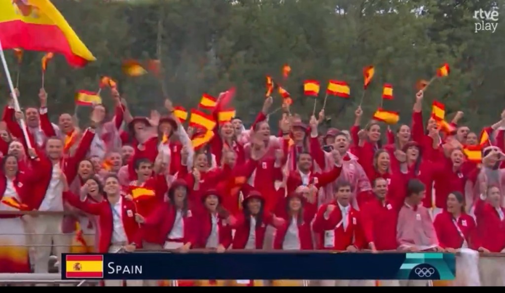 El barco español lleno de sonrisas y de caras de ilusión con los miembros de la delegación nacional luciendo los colores de nuestra bandera. Con chaqueta roja y banderas en mano, los deportistas españoles viven un momento histórico con una ceremonia atípica cruzando el Sena, una iniciativa que lejos del rechazo que han podido leer anteriormente, a mi me ha gustado y ha sido más que correcta.