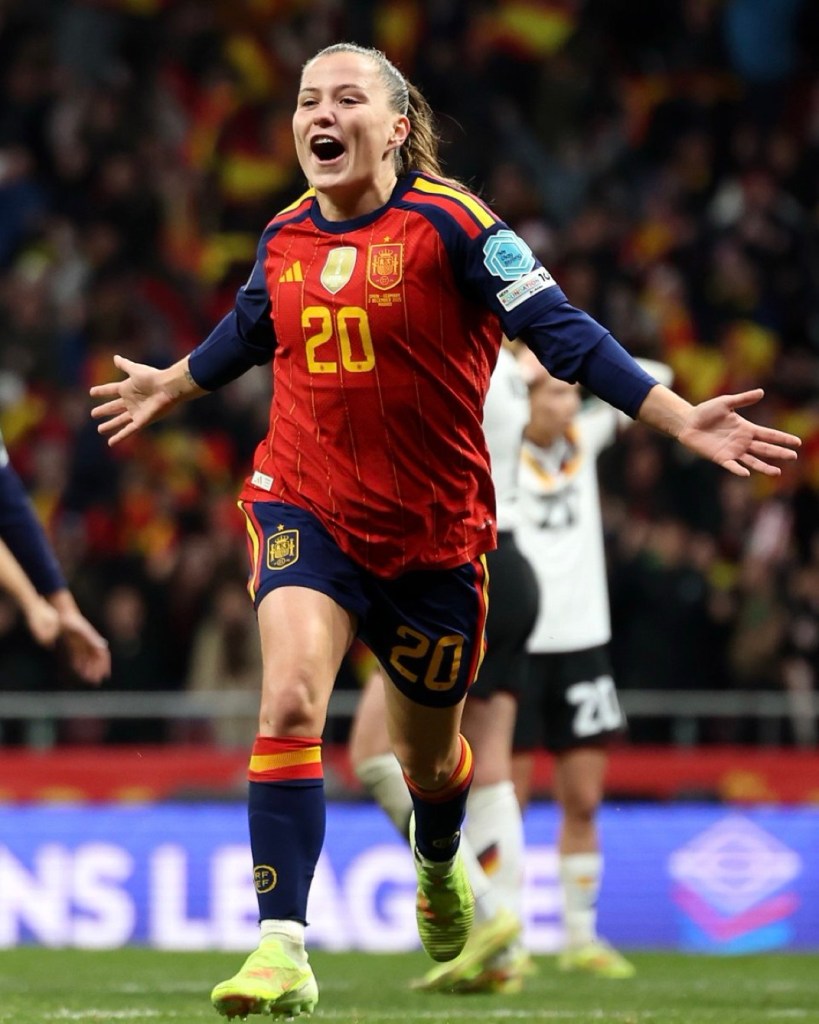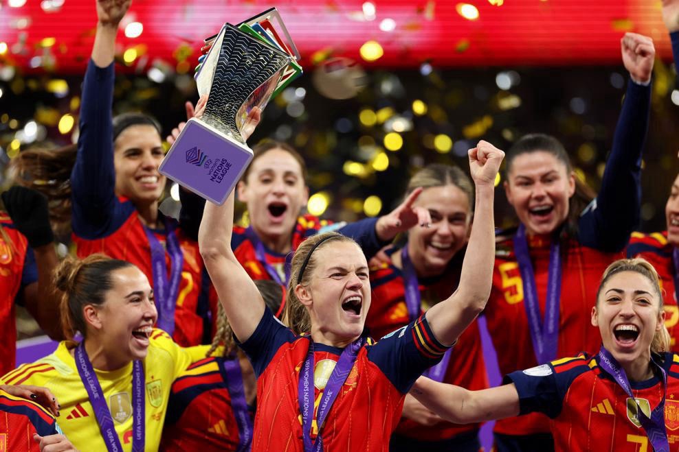La final de la Nations League celebrada en el Estadio Metropolitano de Madrid fue histórica: España se impuso 3‑0 a Alemania ante un récord de 55.843 espectadores, con un doblete de Clàudia Pina y un gol de Vicky López. Esta victoria confirmaba a España como campeona de la Nations League por segunda vez consecutiva tras ganar la edición inaugural 2‑0 frente a Francia en Sevilla, consolidando un ciclo de dominio continental.  La actuación de Pina, autora de seis goles en el torneo, subrayó su importancia como figura de referencia en la delantera española, acompañada por la elegancia y creatividad de jugadoras como Alexia Putellas y la versatilidad de Esther González.