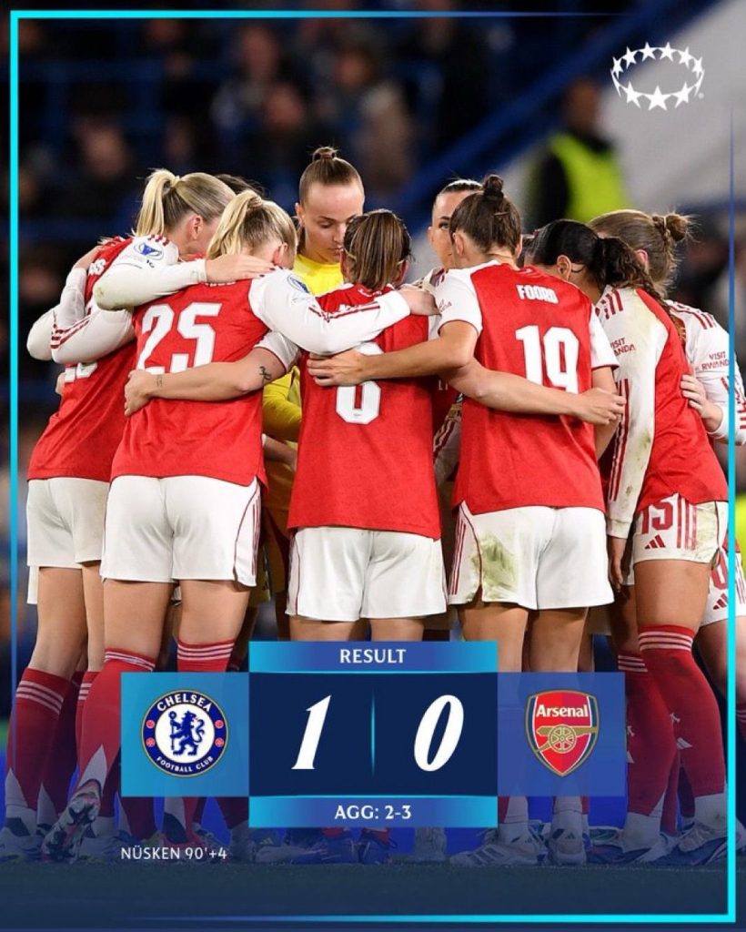 🟦 Derrotadas en la batalla (0-1), pero vencedoras en la guerra, las ‘Gunners’ sobrevivieron al asedio del Chelsea en una noche épica de fútbol europeo para sellar su pase a semifinales de la UEFA Women’s Champions League, donde ya esperan al gigante que emerja del choque entre el Wolfsburgo y el Olympique de Lyon.