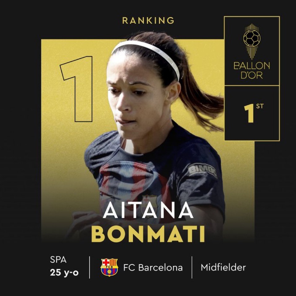 La jugadora del Barcelona ha quedado por encima de futbolistas como Sam Kerr, Alexandra Popp, Hinata Miyazawa (máxima goleadora del Mundial), Rolfö o Stanway. Además de a las otras cinco españolas nominadas: Salma Paralluelo, Mapi León, Patri Guijarro, Alba Navarro y Olga Carmona. España ha sido la gran dominadora de las nominaciones y Aitana, como era de esperar se llevó un merecido galardón después de una temporada casi perfecta. El podio del Balón de Oro también contó con la presencia de Salma Paralluelo, que fue elegida en tercera posición, mientras que la australiana del Chelsea, Sam Kerr, quien acabó segunda en la votación.