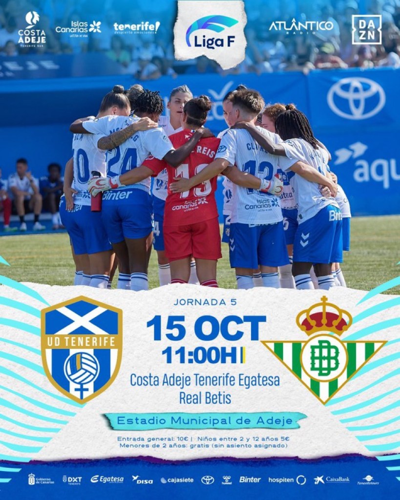 Nuevo reto en casa, con el objetivo de estrenar el casillero de victorias en el segundo encuentro en Adeje. El Costa Adeje Tenerife Egatesa buscará sumar su segundo triunfo consecutivo en liga, con el Real Betis como rival (domingo, 11:00 horas), con las cámaras de DAZN en directo y también emitido en directo por Atlántico Radio.