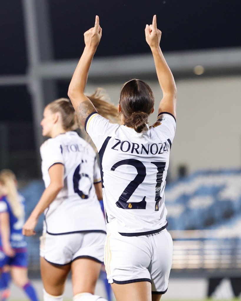El gol de Zornoza la convirtió en la primera madridista en estrenarse en Champions de cara al gol esta temporada, que además supuso su quinto gol en la competición. Una diana de oro que la señaló como la máxima goleadora disponible de la competición del Real Madrid, con 5 tantos, tan solo por detrás de Esther González y Caroline Weir, ambas con seis dianas y sin posibilidad de sumar más tantos en el torneo, una juega en Estados Unidos, y la otra sufre una grave lesión de LCA que le impedirá vestirse de corto éste curso.